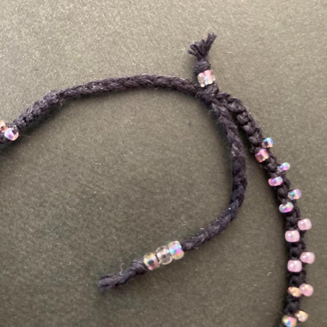ガラス製のシードビーズをコットンヤーンでまとめました。