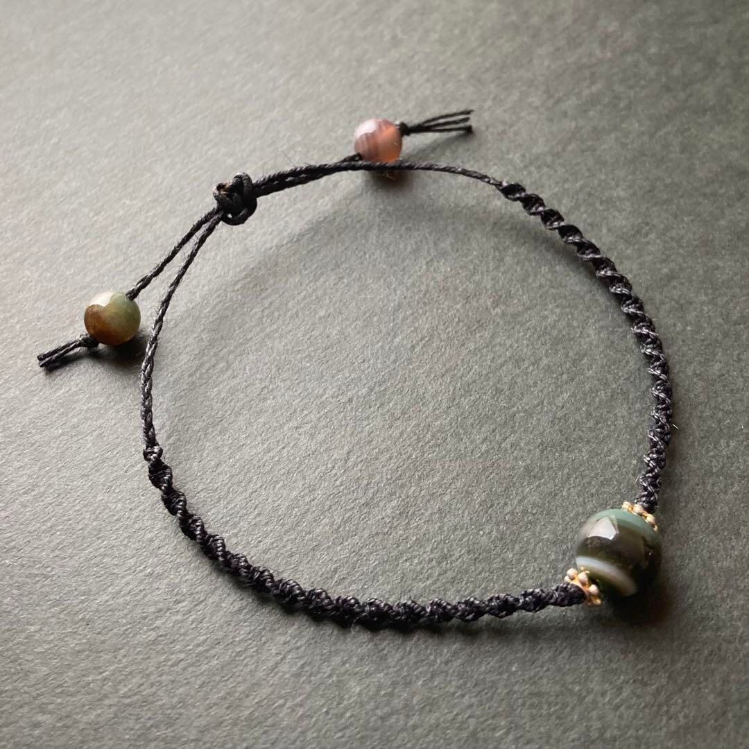 アゲート(瑪瑙)を細身の麻糸でブレスレットに仕立てました。