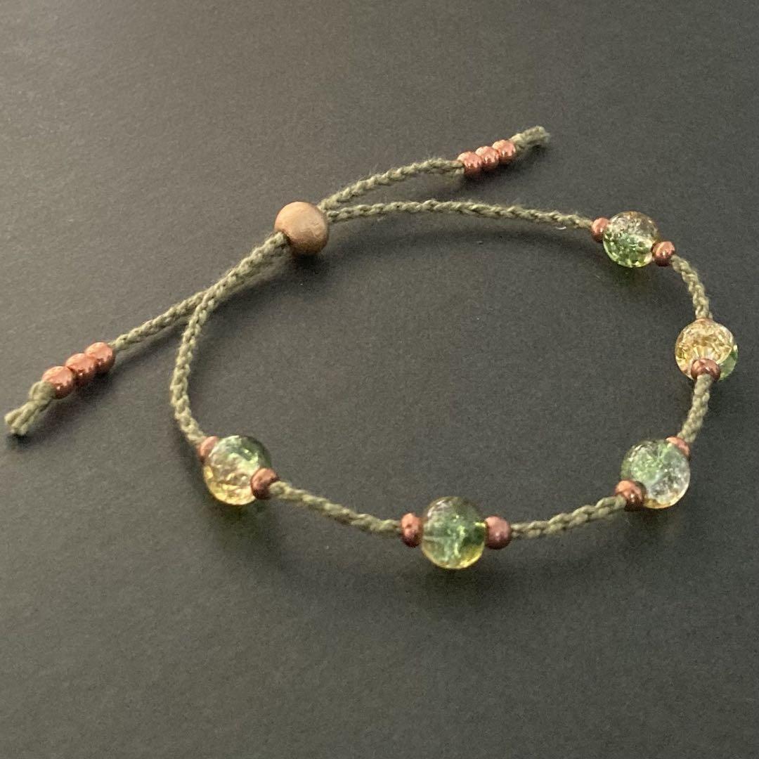 ヒビ割れ模様が綺麗なクラックビーズを柔らかいコットン糸で繋げてみました。