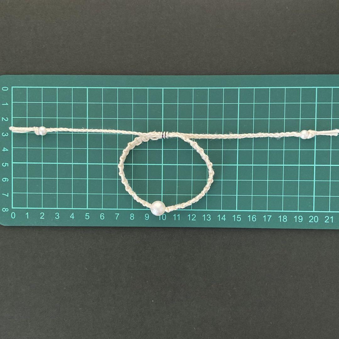ハンドメイド [ 2528 ] ヘンプ アンクレット 16〜30cm オフ白
