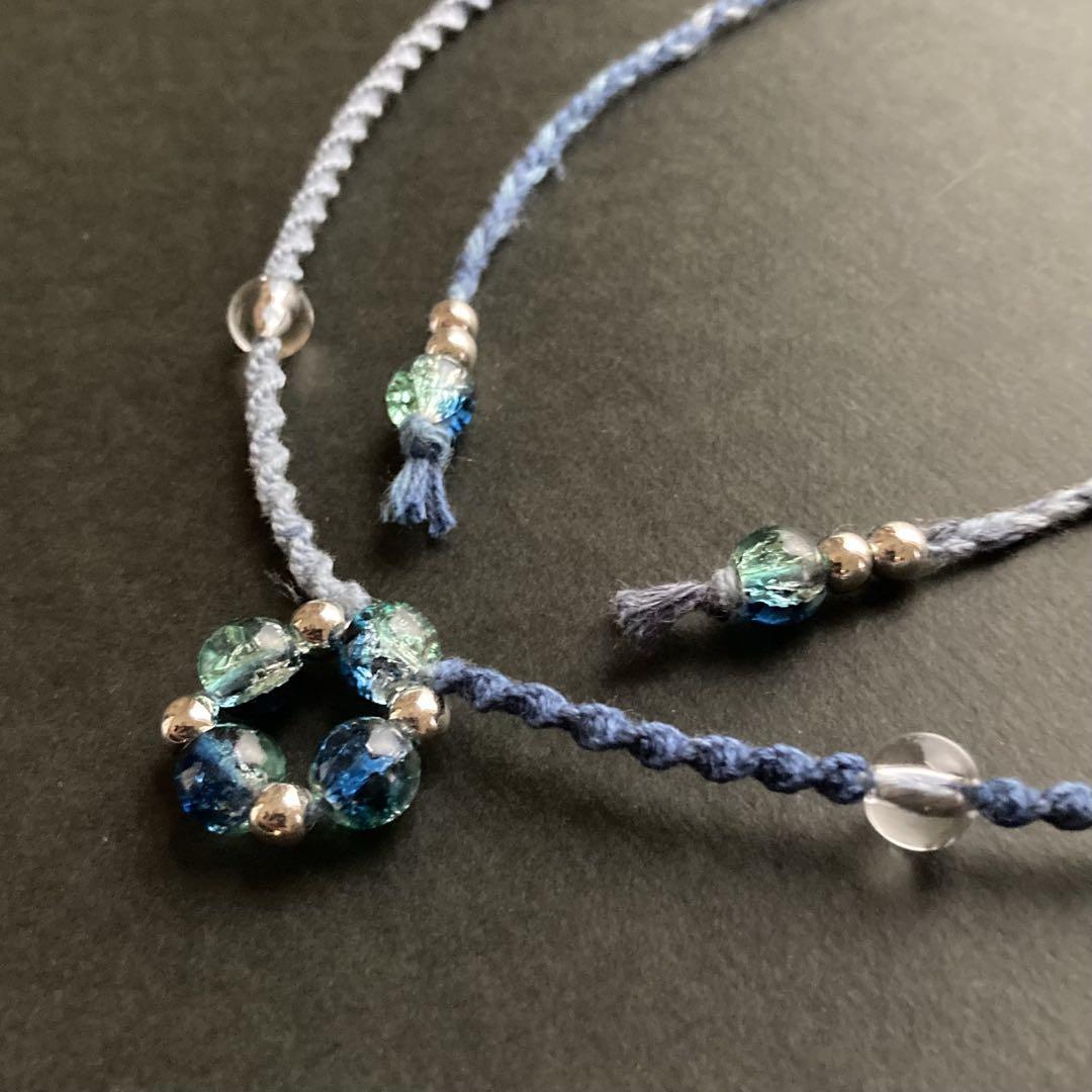 ハンドメイド [ 2537 ] ネックレス 30〜70cm ブルー クラックビーズ