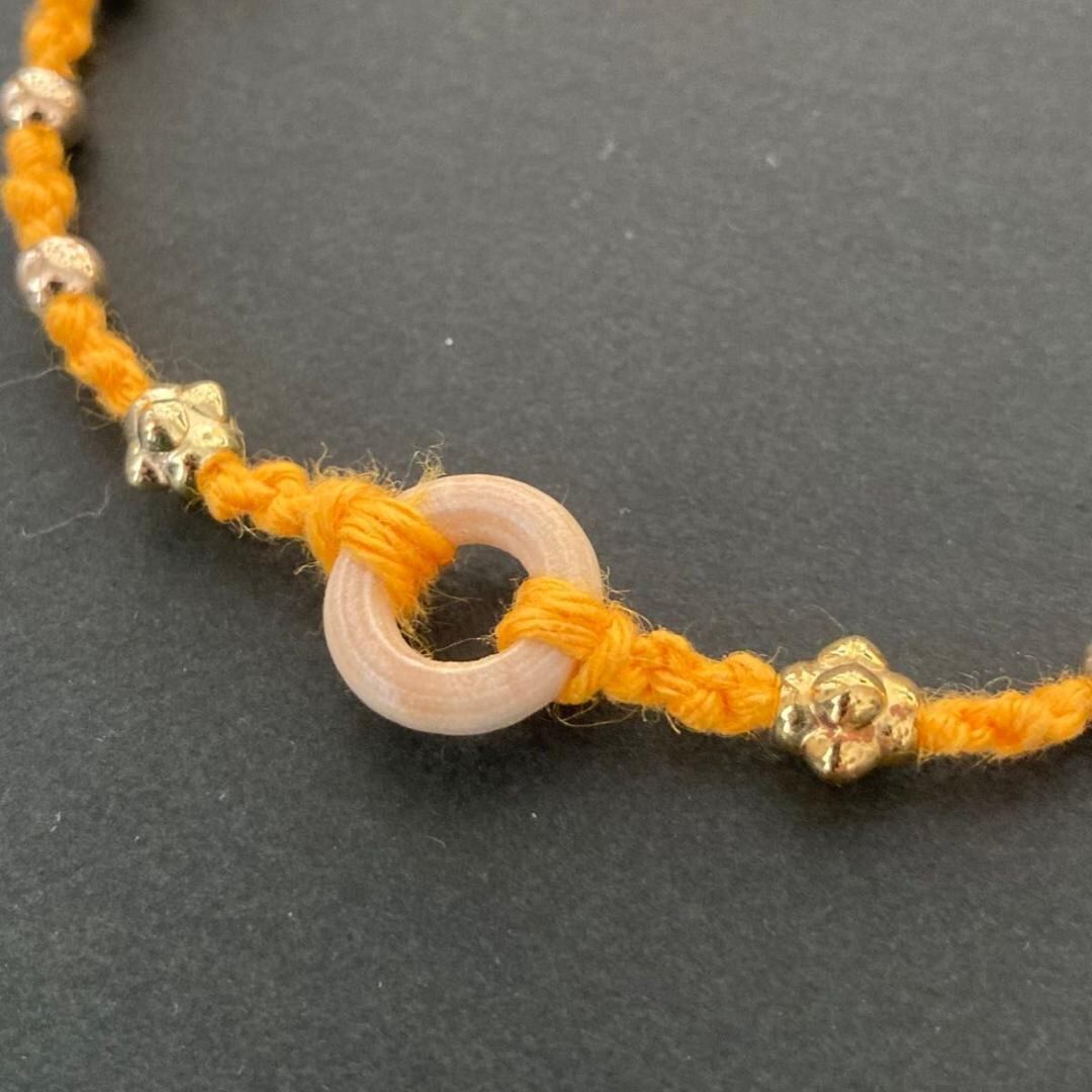 ハンドメイド [ 2541 ] ヘンプ ブレスレット or アンクレット 15〜30cm イエロー ゴールド