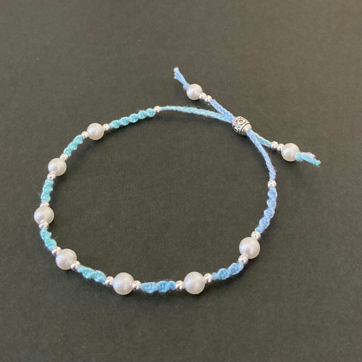 ハンドメイド [ 2569 ] ブレスレット 16〜23cm コットンパール調ビーズ ブルー グラデーション
