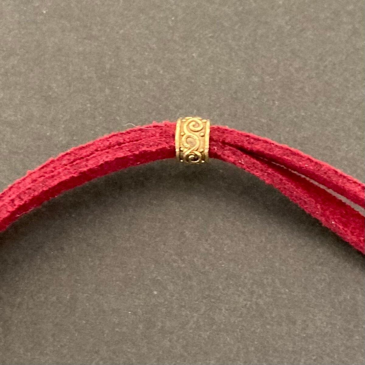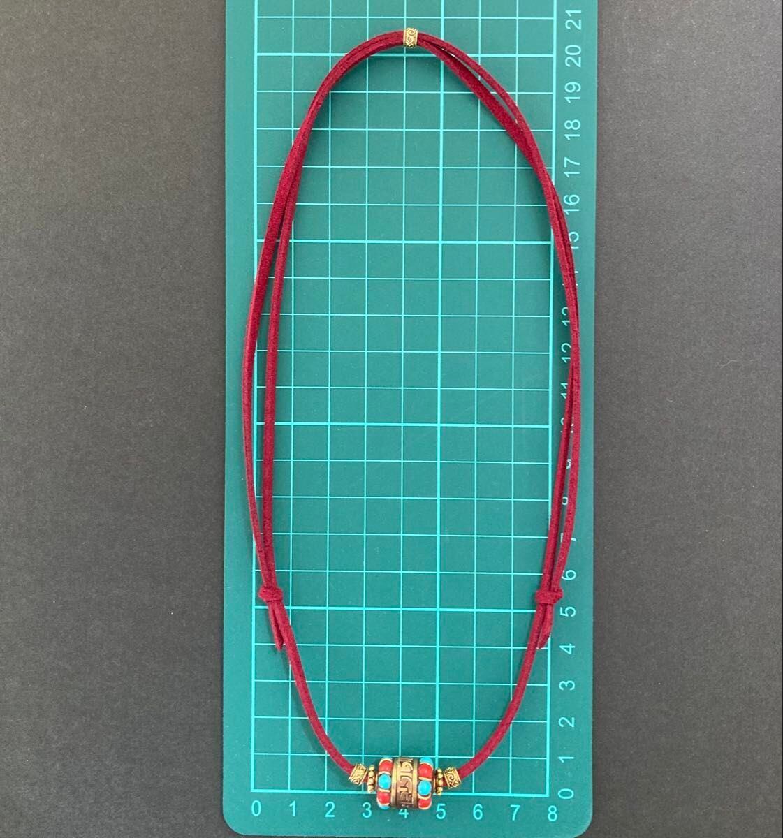ハンドメイド [ 2583 ] 革紐 ネパールビーズ チョーカー ネックレス 40〜77cm 赤