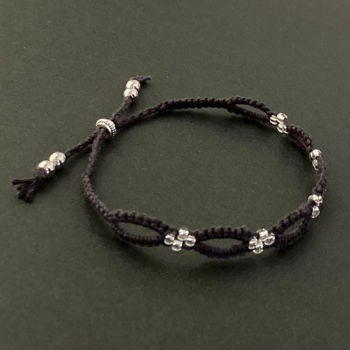 ハンドメイド [ 2593 ] マクラメ ブレスレット 15〜22cm ブラック グラスビーズ