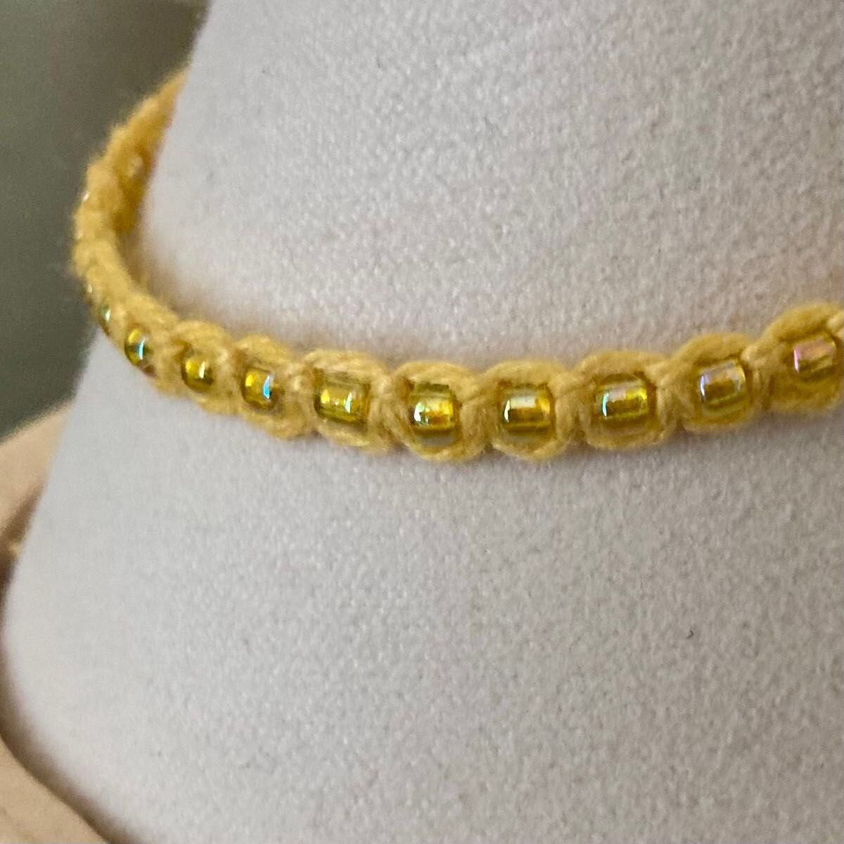 ハンドメイド [ 2595 ] ブレスレット 16〜22cm イエロー グラスビーズ