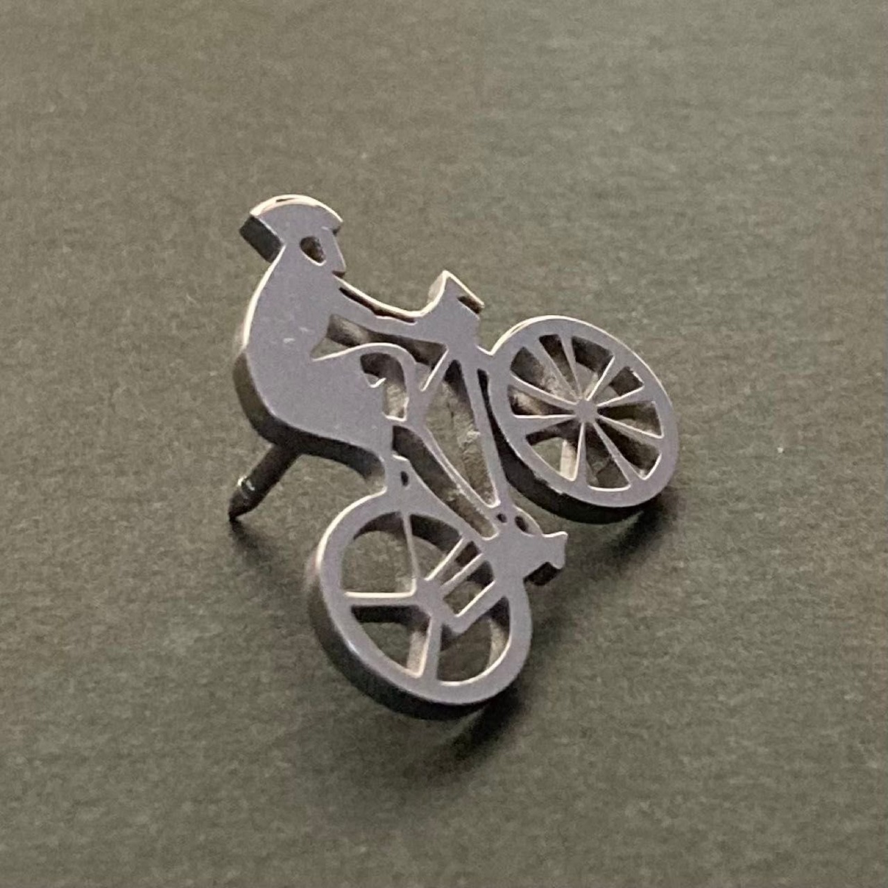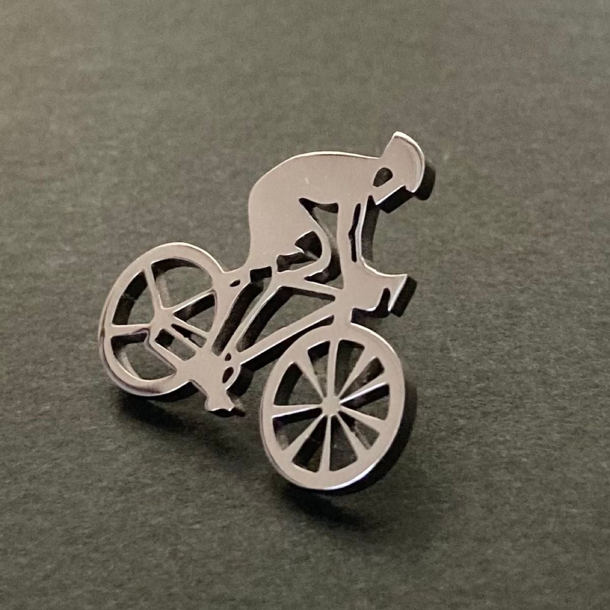 ロードレーサーで疾走するサイクリストモデルのピンズです。