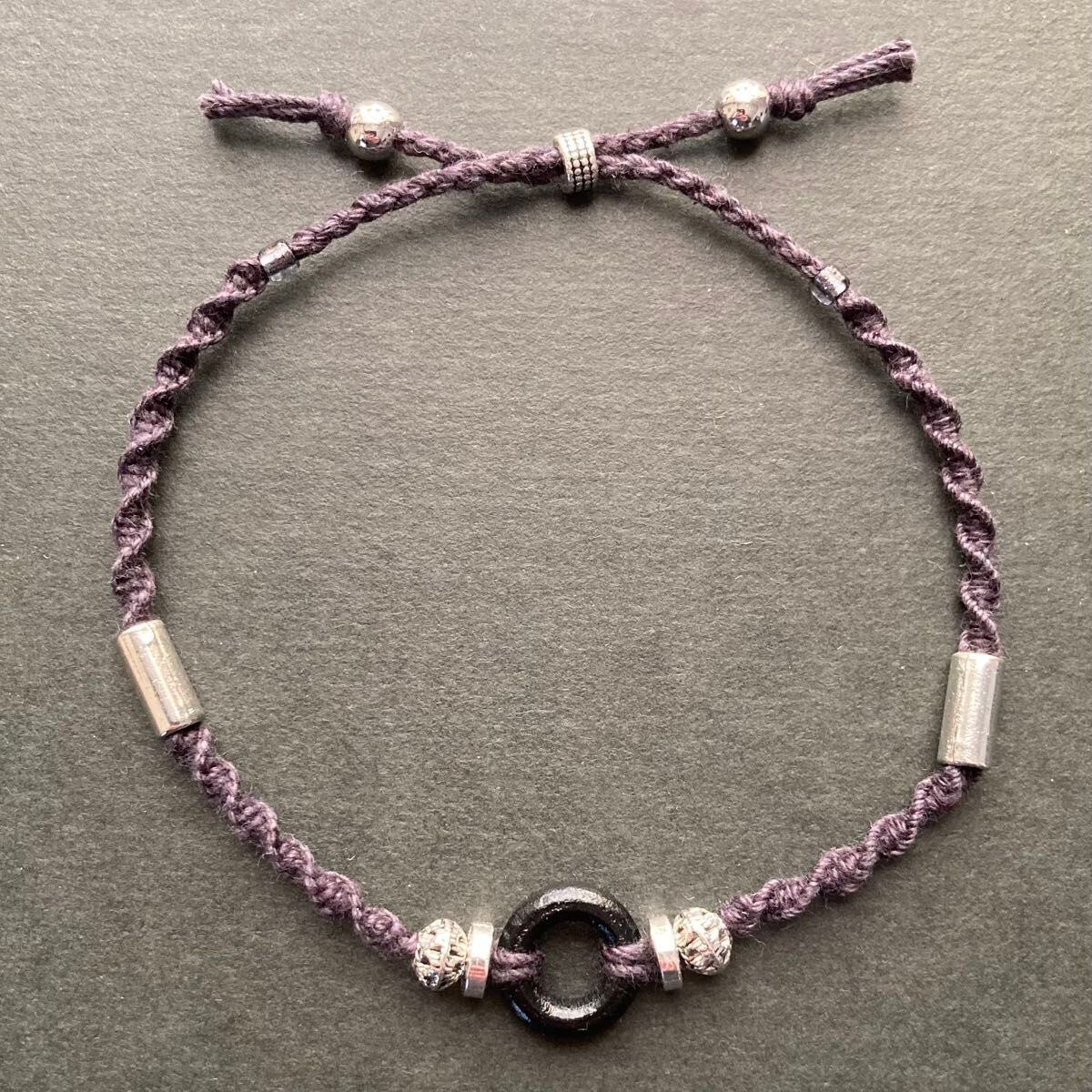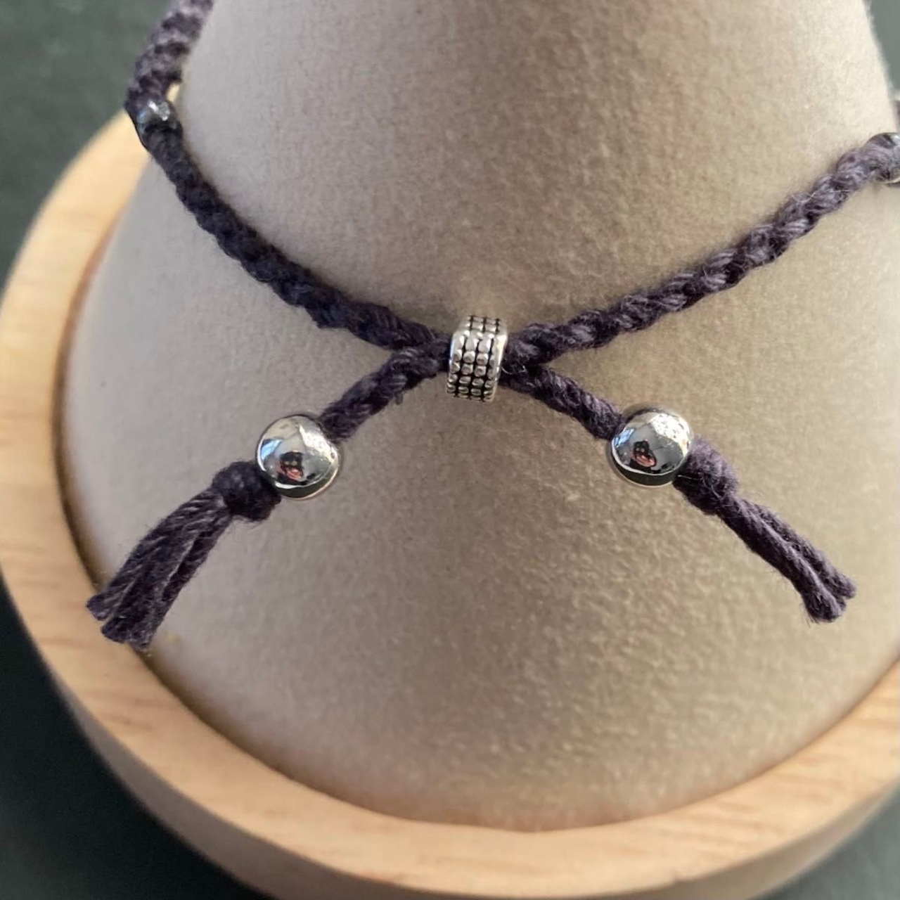 ハンドメイド [ 25100 ] マクラメ ブレスレット 15〜22cm 黒 × シルバー