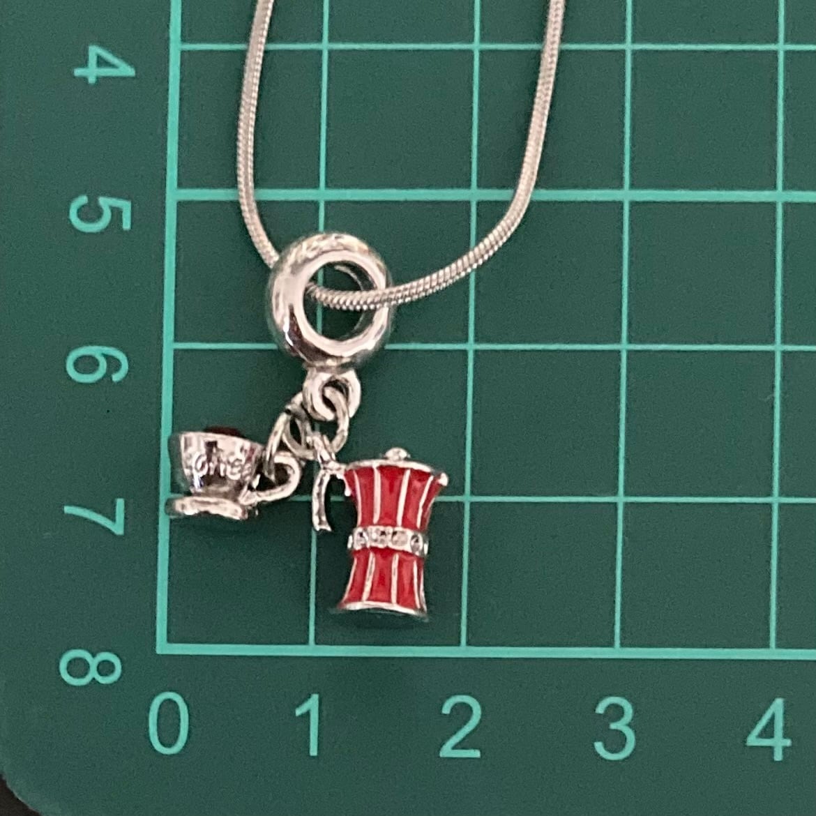 珈琲 ペンダント [ マキネッタ & コーヒーカップ ] ロジウム ネックレス スネークチェーン 40cm