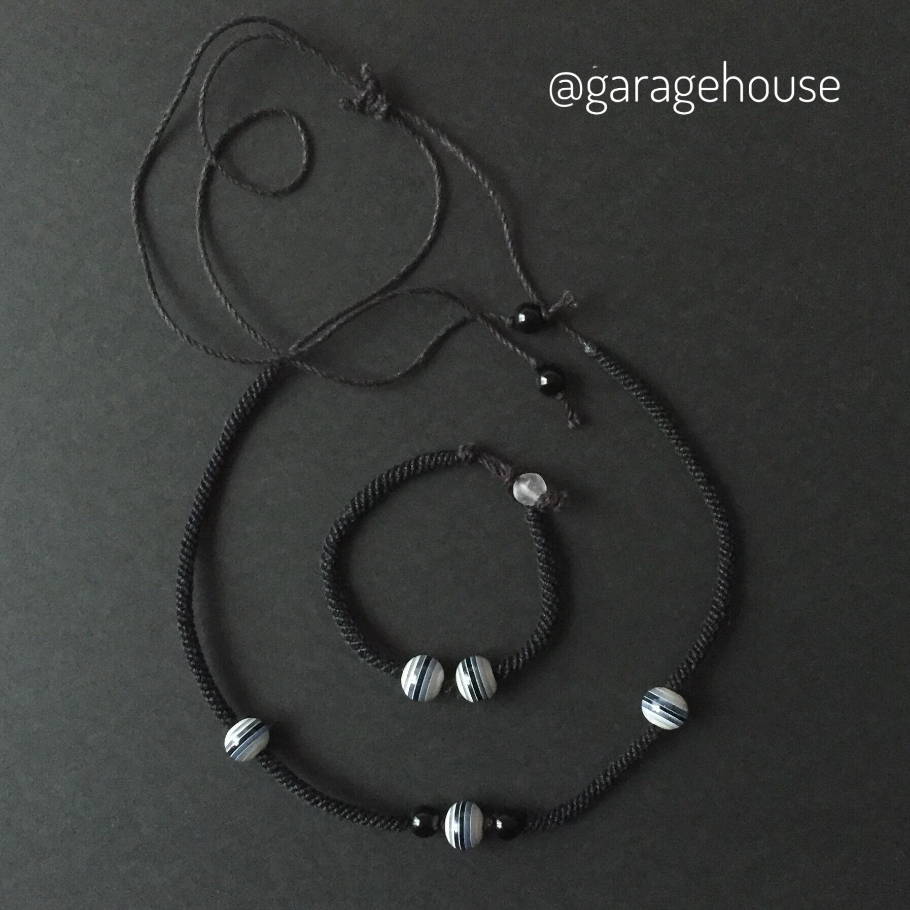 ネック & ブレス セット [ ブラック 32〜95 ] ヘンプ 樹脂ビーズ サイズ調節