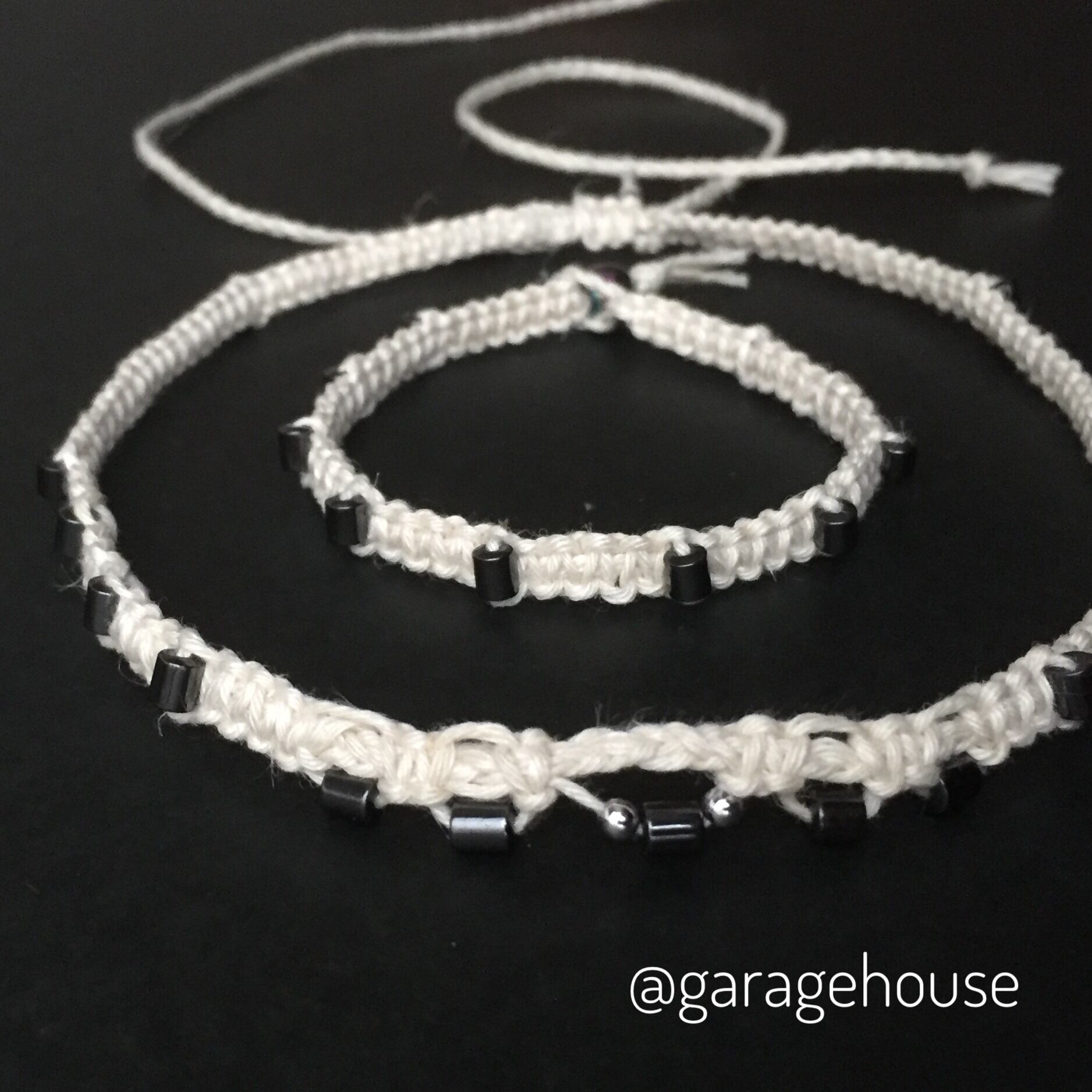 ネック & ブレス セット [ オフホワイト 35〜80 ] ヘンプ 樹脂ビーズ サイズ調節