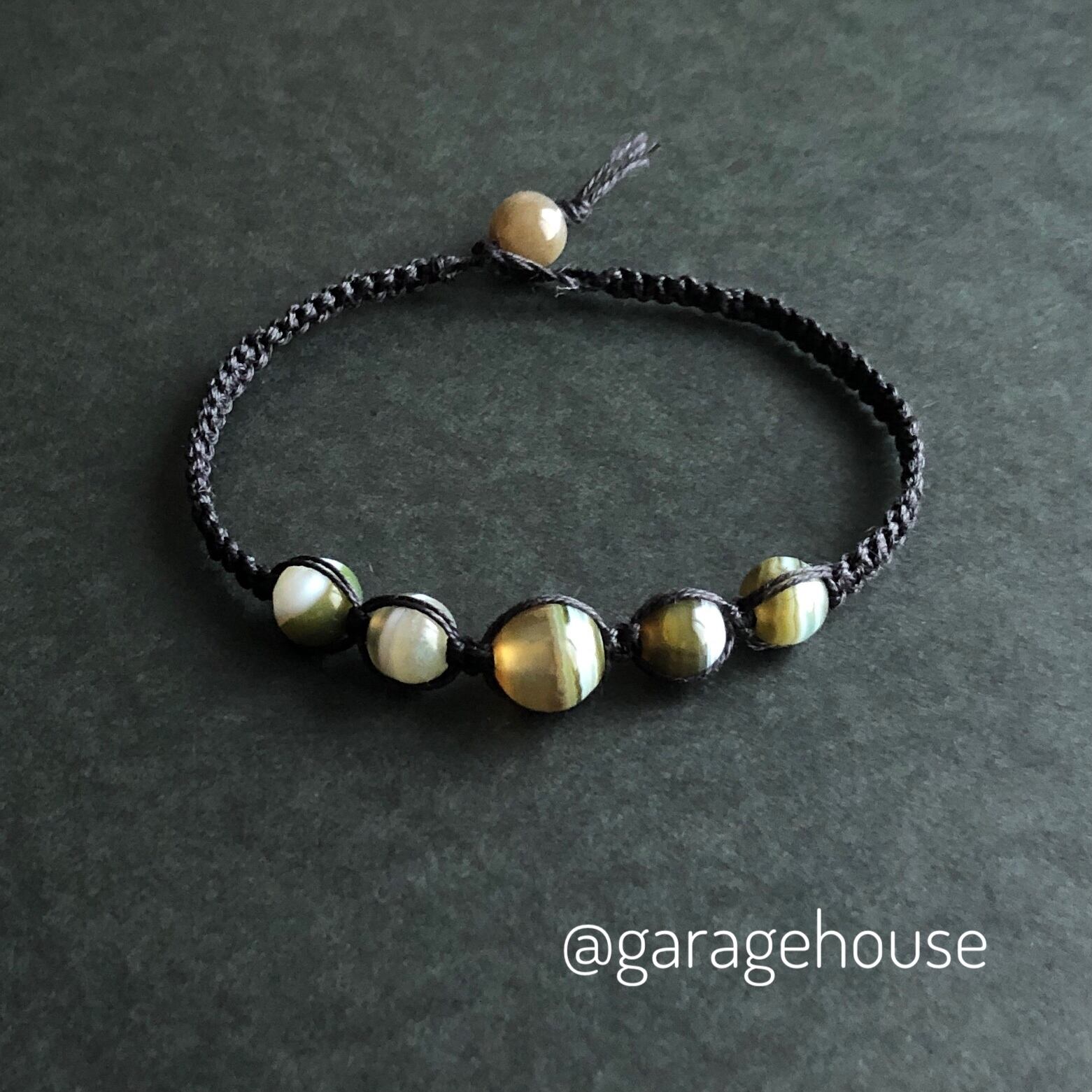 * ハンドメイド * 天然石ブレスレット [ 瑪瑙 + 黒 ]