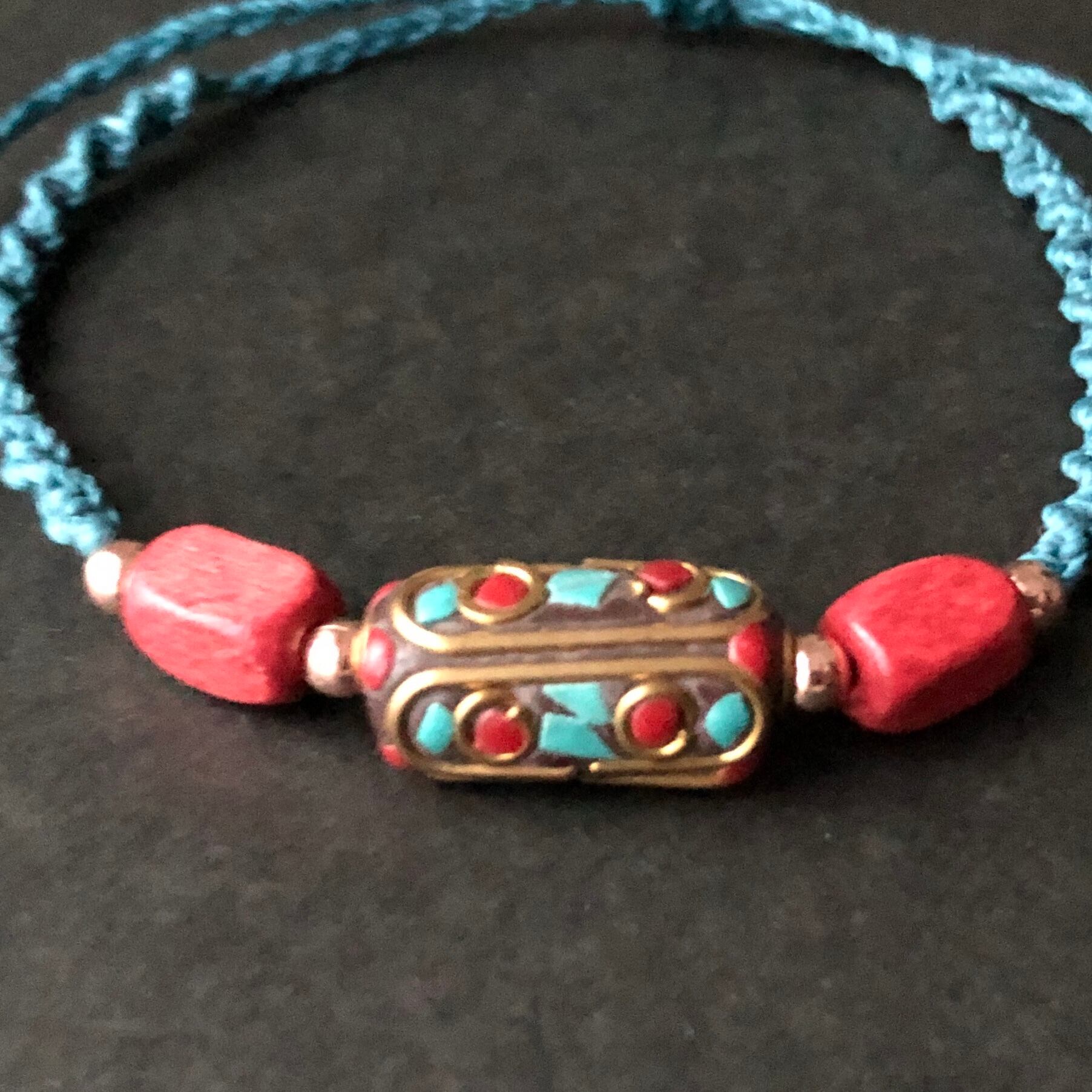 ネパールビーズ:真鍮、ターコイズ、珊瑚