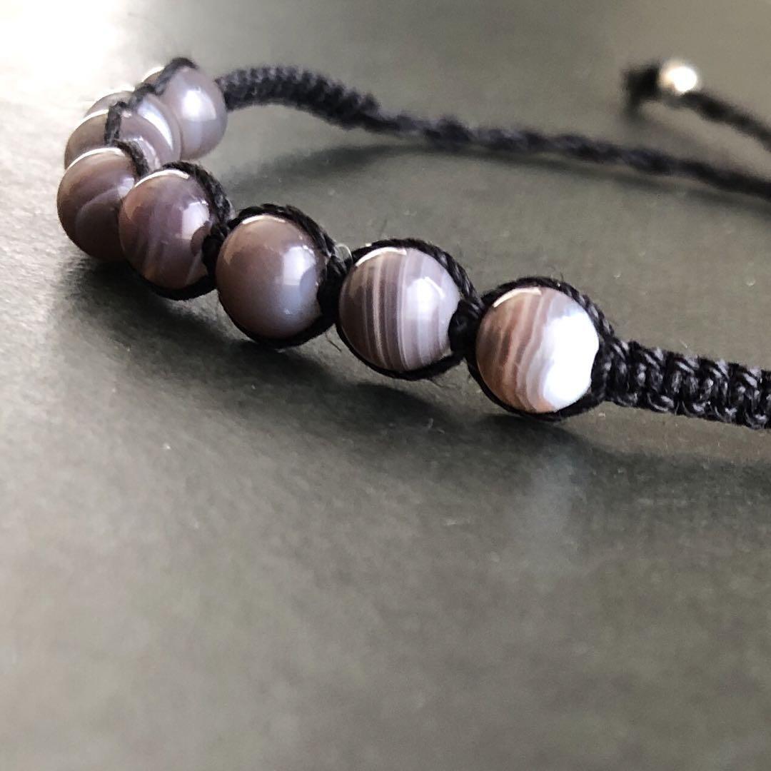 グレイ系の縞模様が綺麗なビーズを選びました。