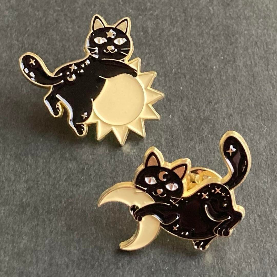 陰陽 ピンズ [ 日月ねこ ] ピンバッジ ブローチ ラペルピン ペアセット